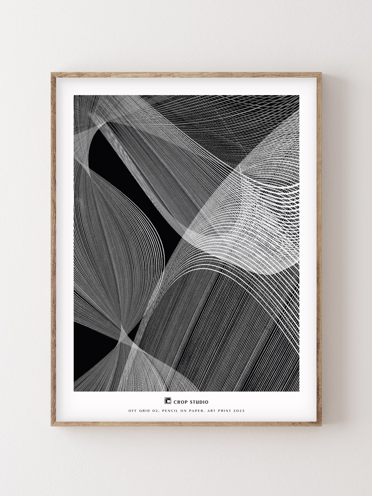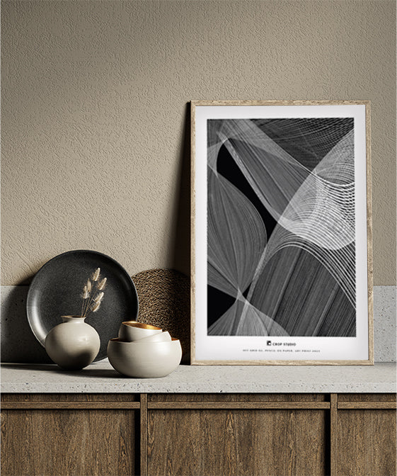 Layered lines build a textured, dynamic composition that explores the dialogue between two-dimensional and three-dimensional. The monochromatic palette gives it a timeless appeal, ideal for modern interiors and contemporary design environments.